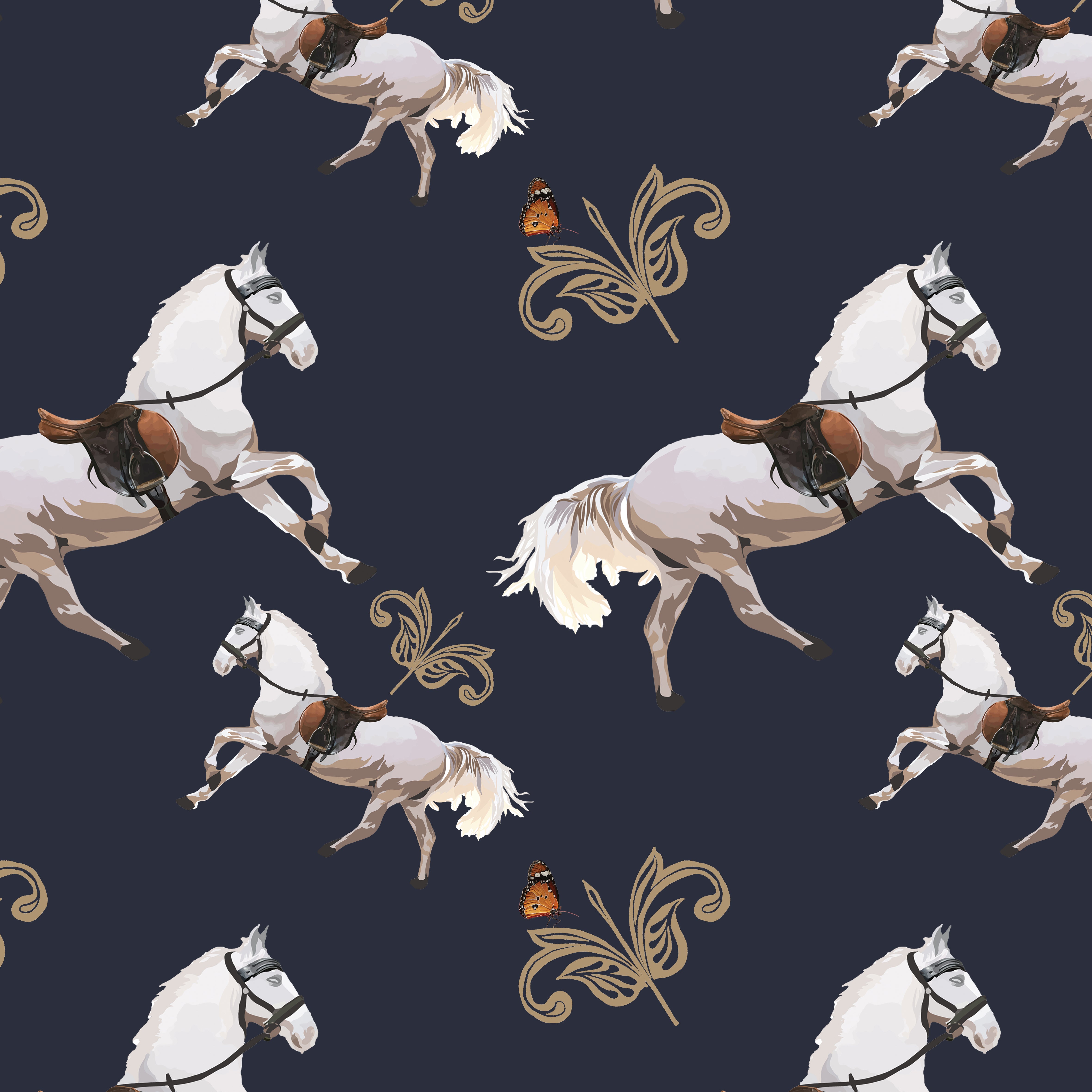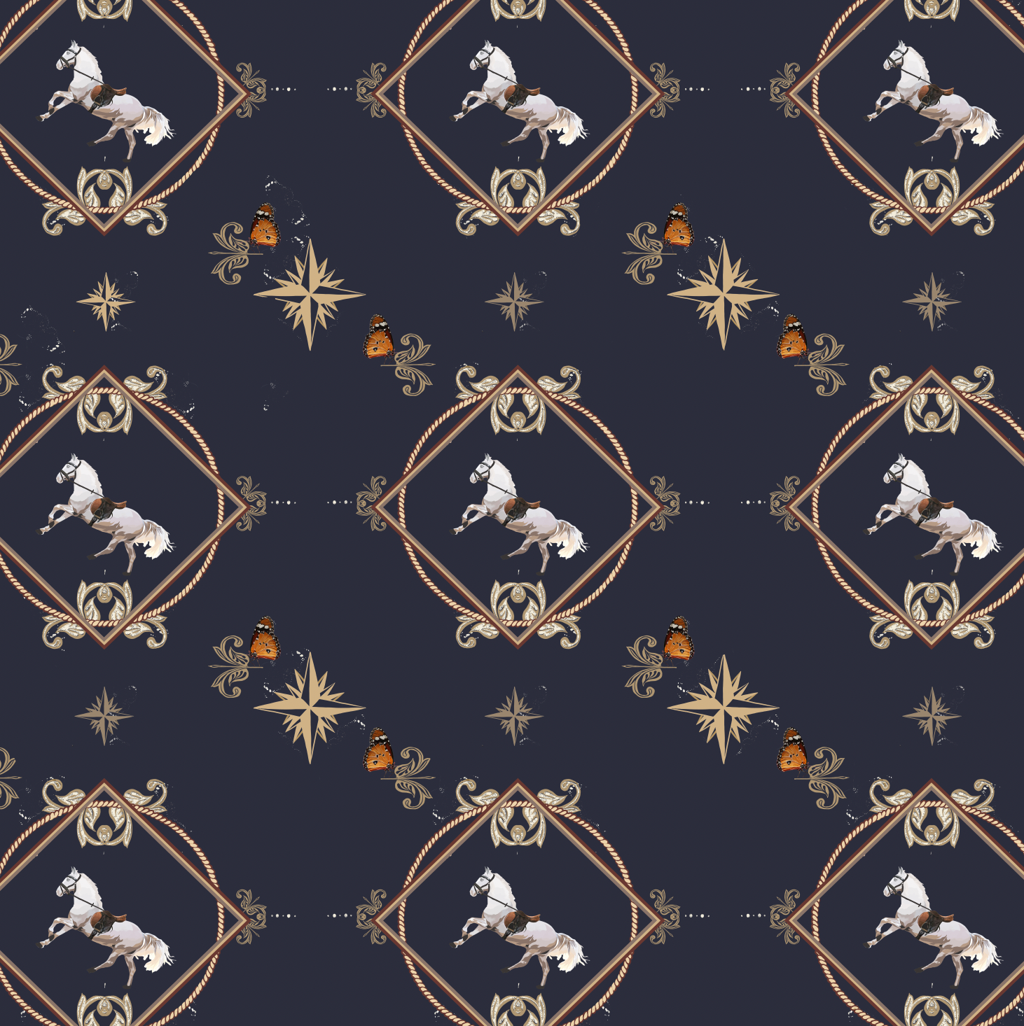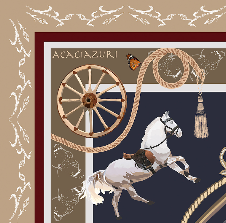 The Classic Equestrian design is a timeless ode to countryside elegance, inspired by Acacia’s own childhood memories of horse riding with her grandmother in Norfolk. Each piece captures the grace and strength of the horse - set against textured ropes, carriage wheels, compass roses and monarch butterflies.
