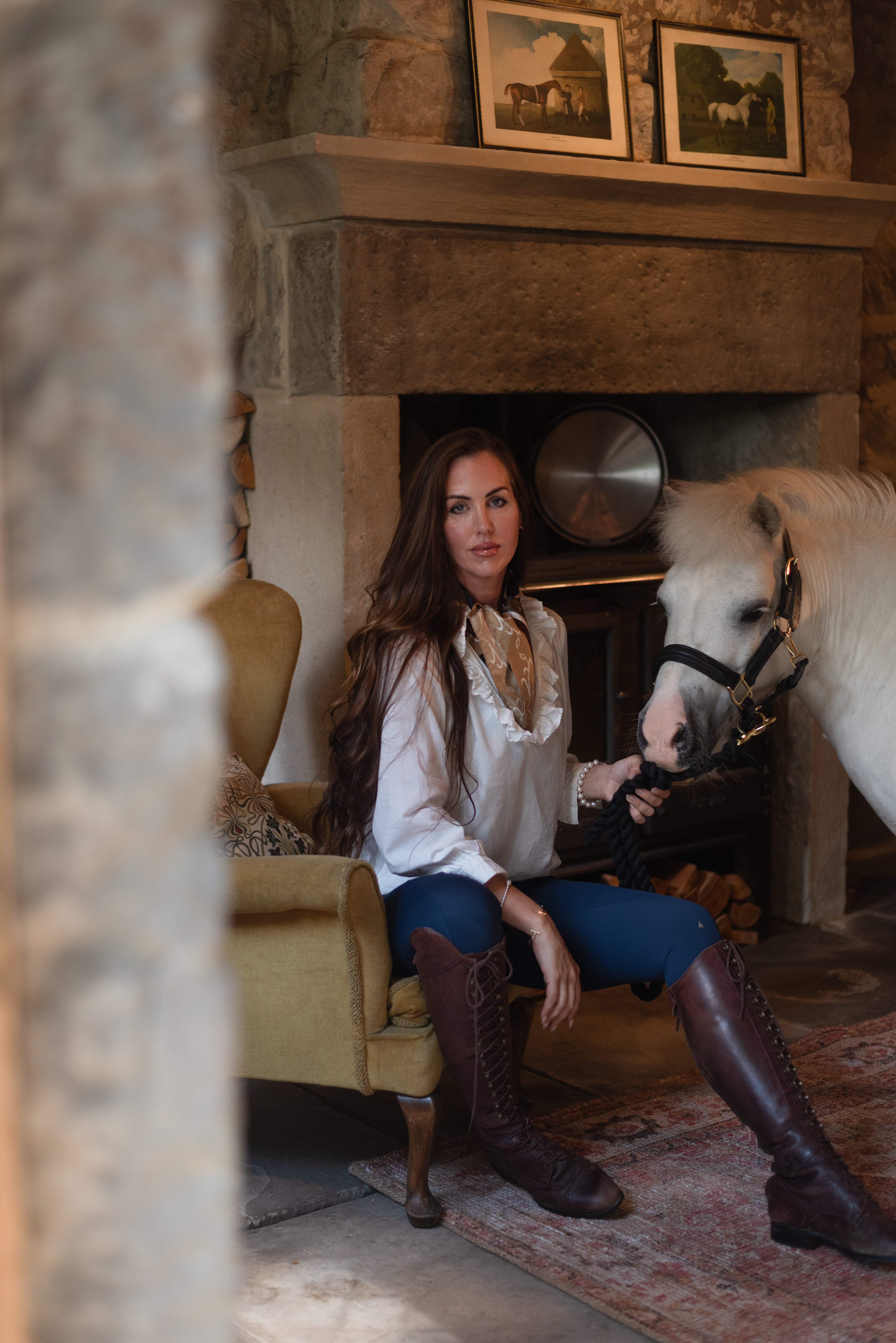 Rooted in cherished memories of countryside escapes, the Equestrian Collection draws inspiration from Acacia’s childhood visits to Norfolk, where weekends were spent horse riding with her grandmother. Blending British heritage with feminine elegance, each design captures the quiet beauty of country life — from the saddle to the stable, and everything in between. This collection comes to life through hand-drawn silk scarves, twillies, pyjamas, and timeless accessories.