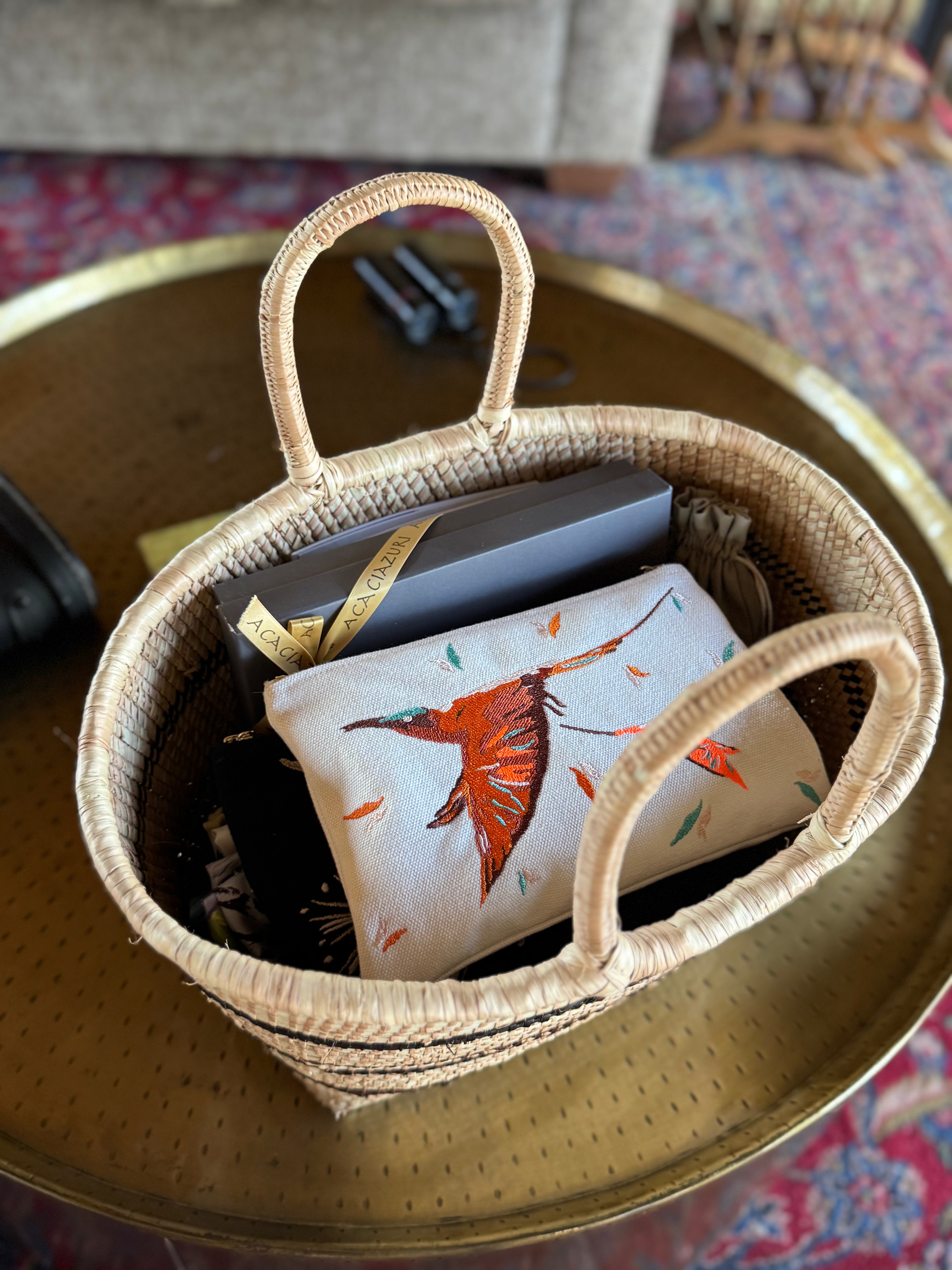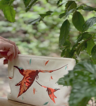 The Carmine Embroidered Bag captures the elegance of Africa’s iconic carmine bee-eaters in full flight. Meticulously embroidered onto a soft, durable cotton canvas, each detail reflects our signature artistry and commitment to exquisite craftsmanship. A versatile piece designed to carry your daily essentials while carrying a story of adventure and beauty.