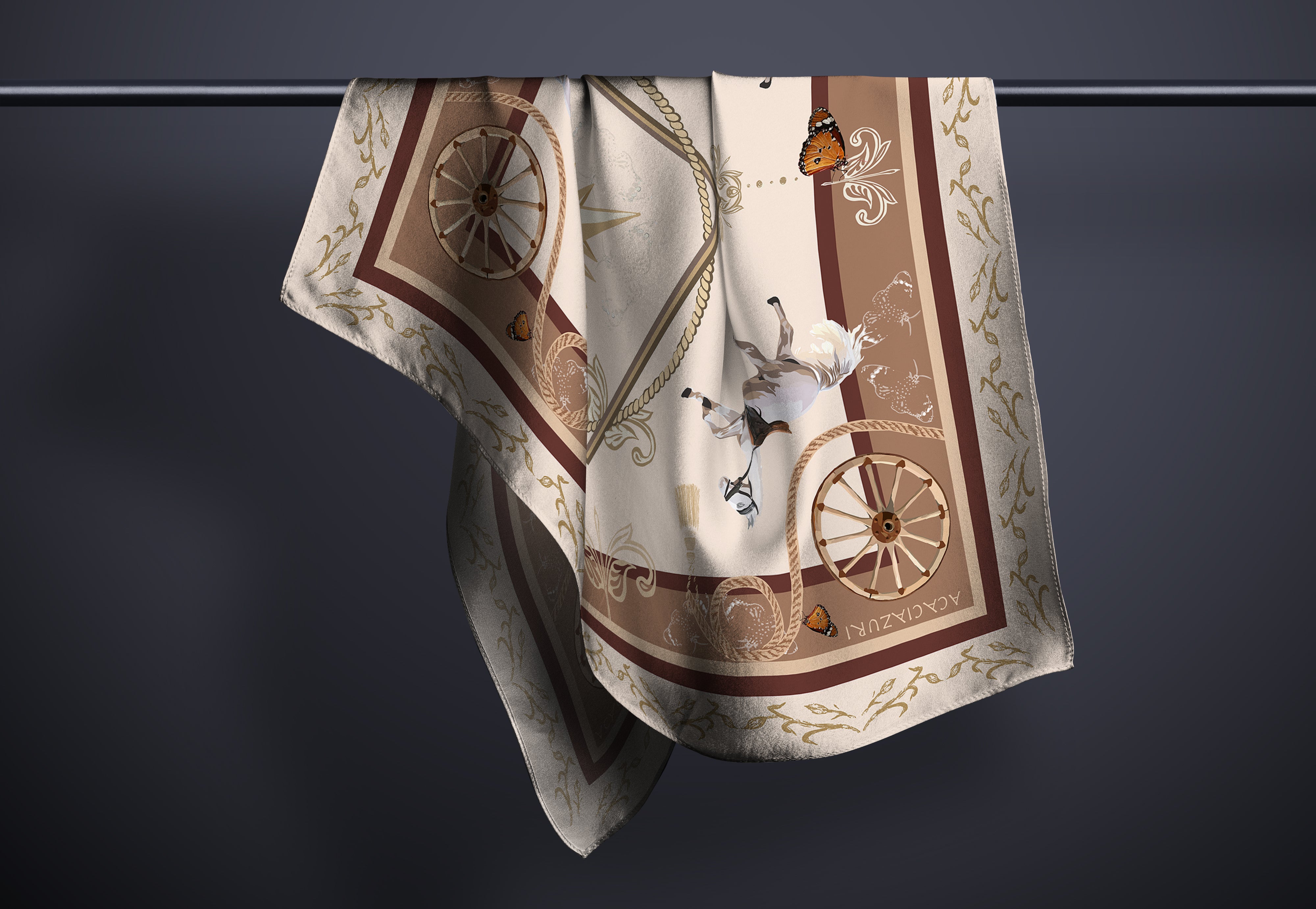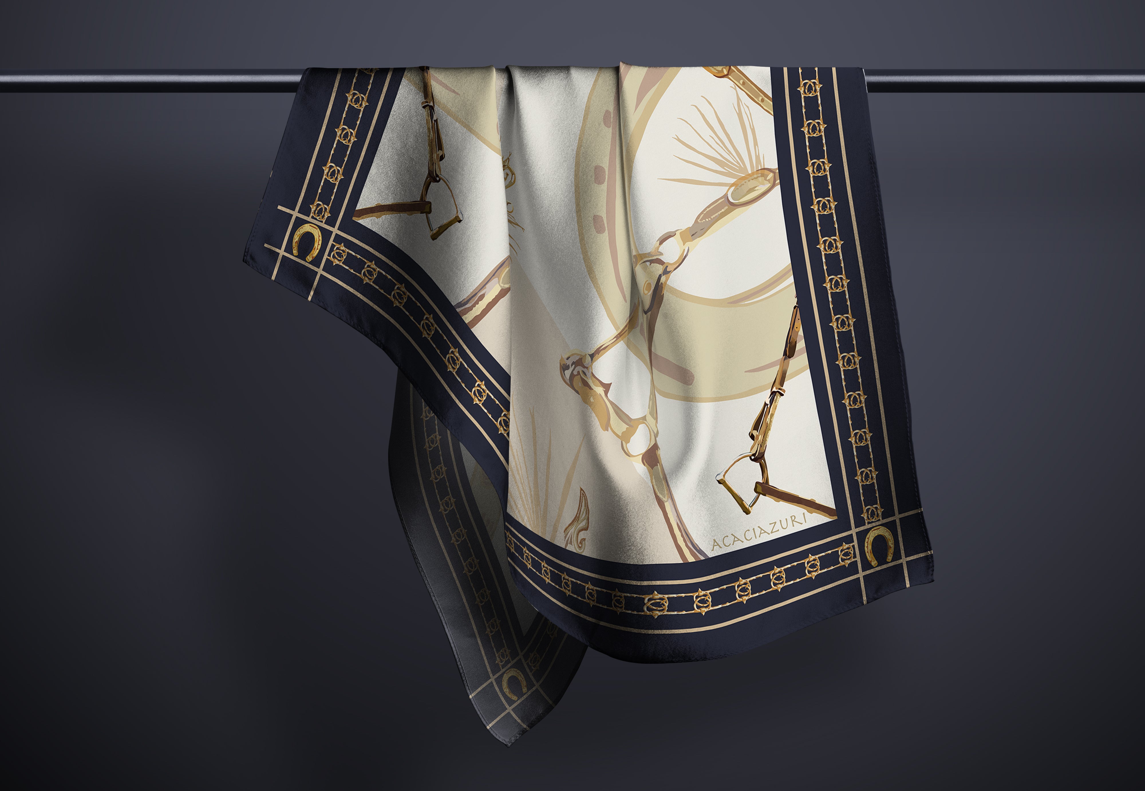 The Bridle Silk Scarf features some of the key elements associated with horse riding.
